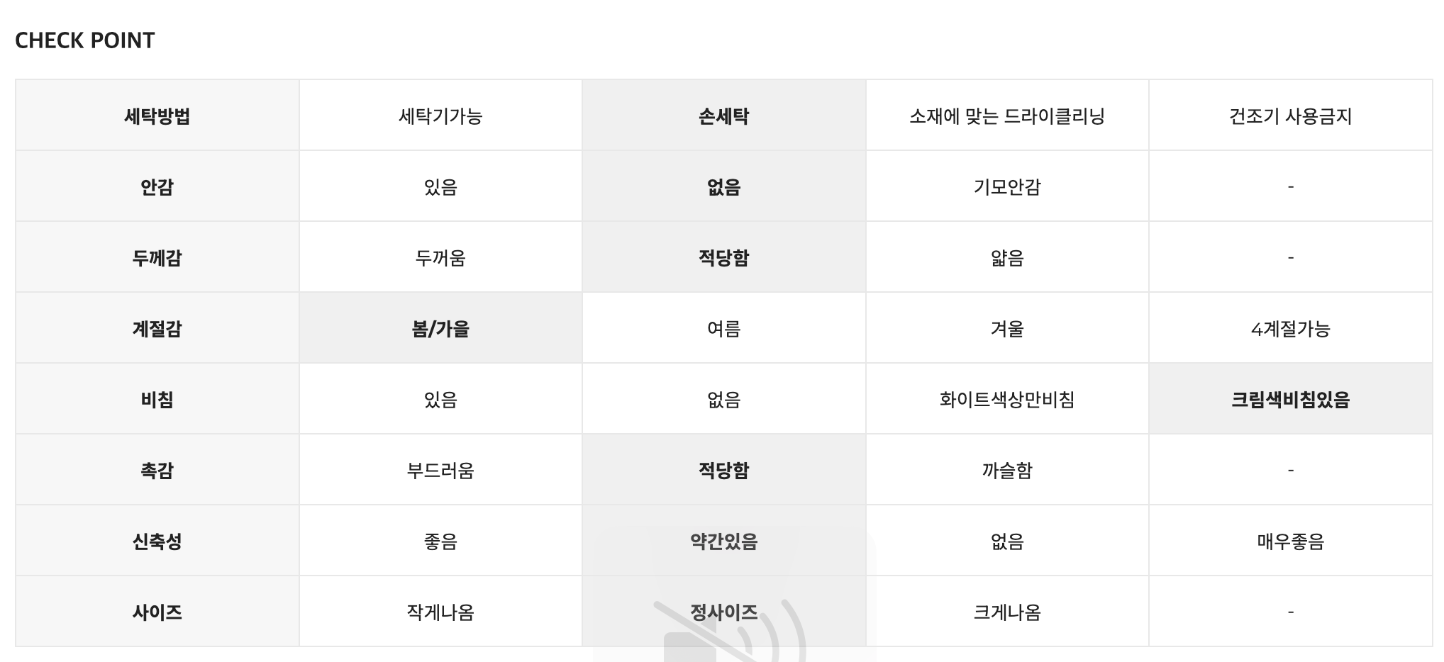 | 세탁방법 및 취급시 주의사항 | 상품 상세 참조 |