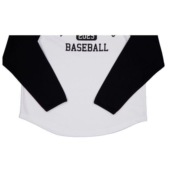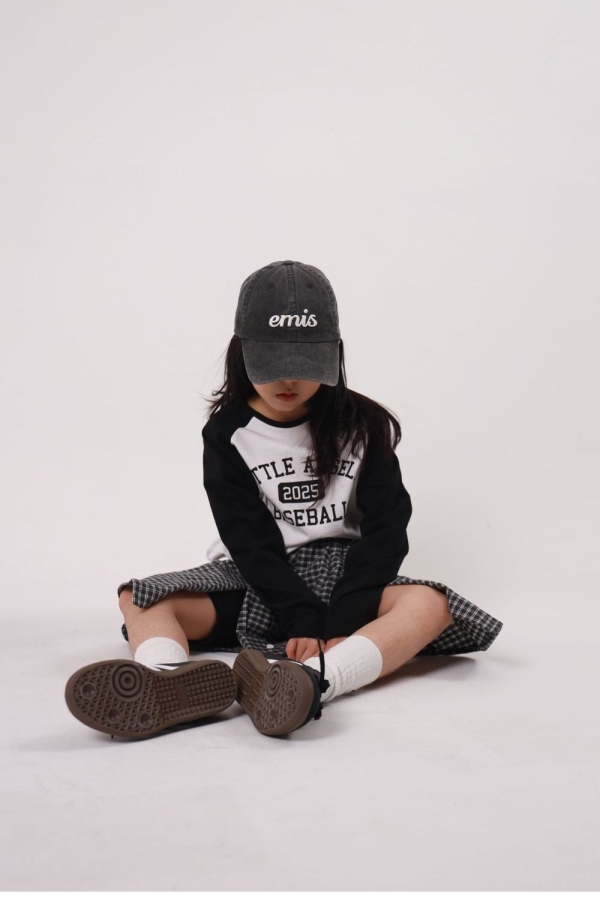 클래식한 스쿨 무드를 더 리얼브랜드의 감각으로 풀어낸 래글런 티셔츠