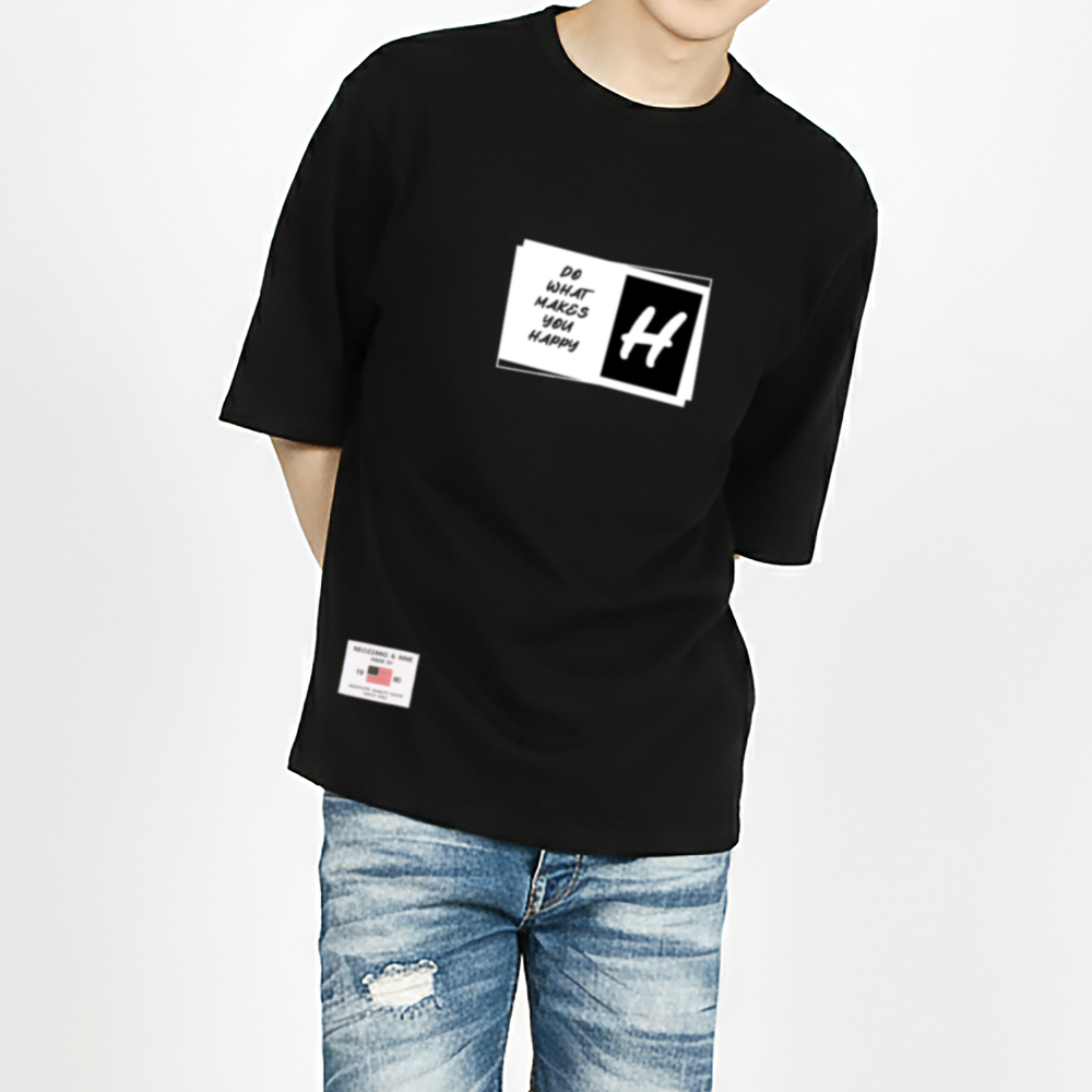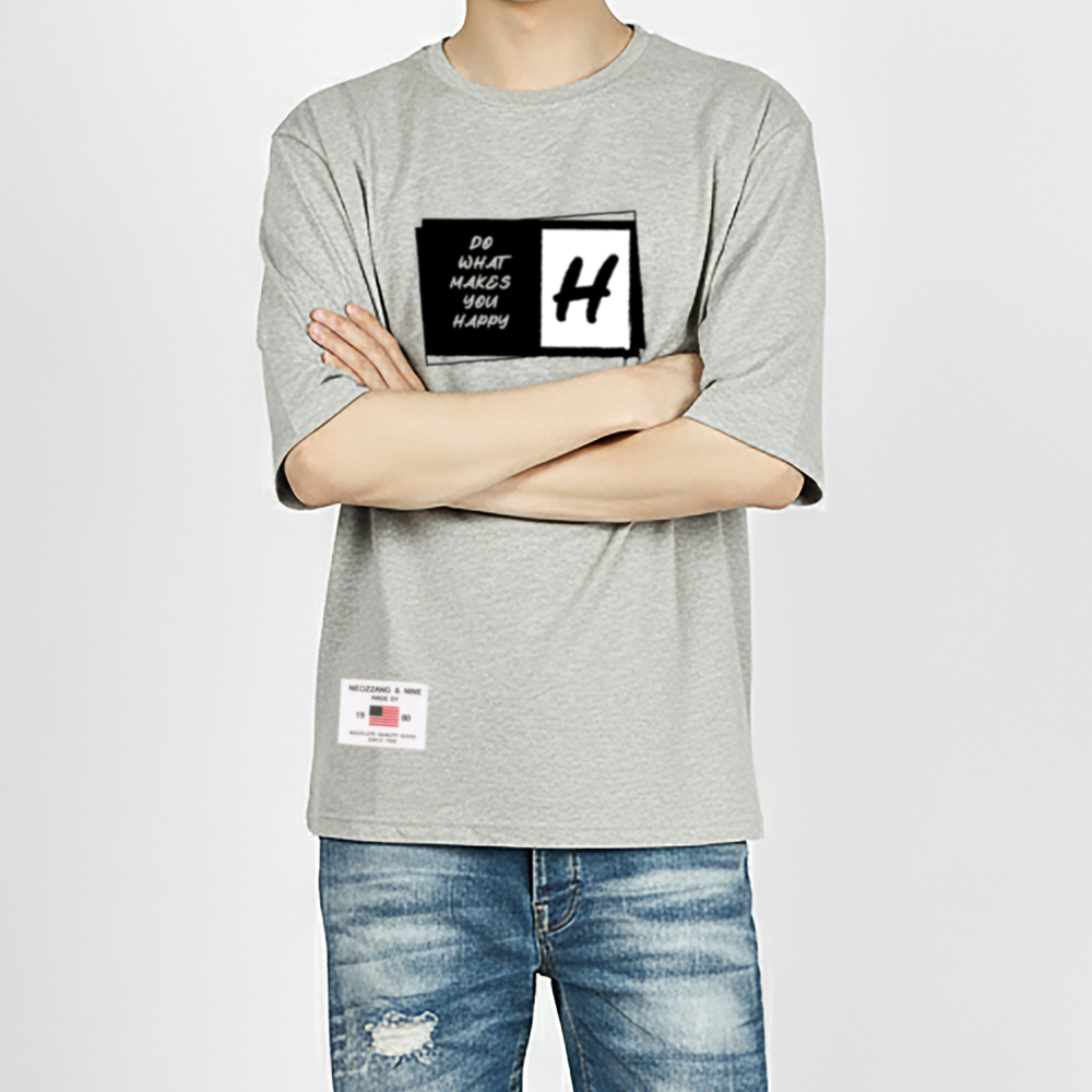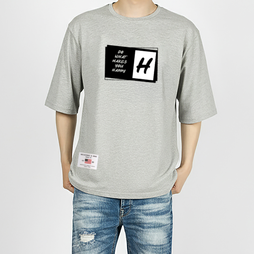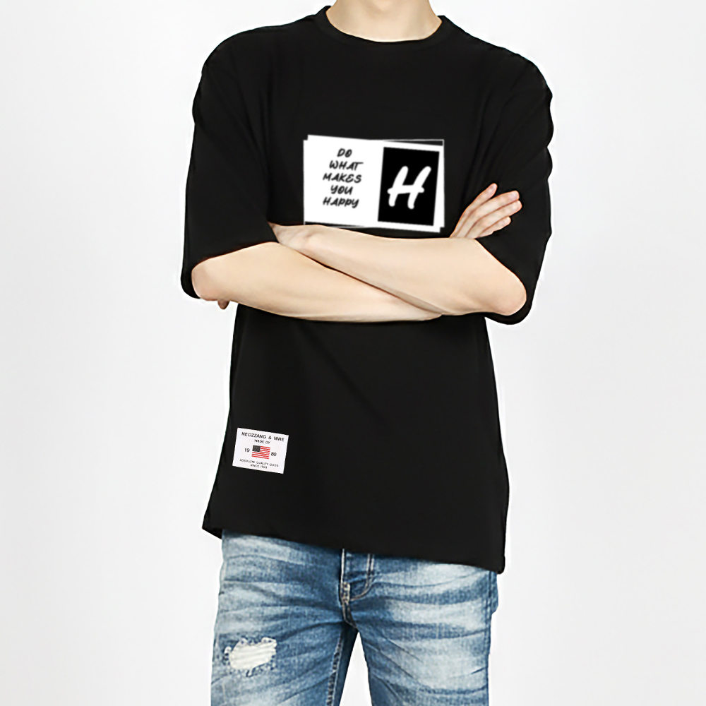 [1+1] HAPPY 5부 반팔 티셔츠 남여공용 20수 면 반소매 티셔츠