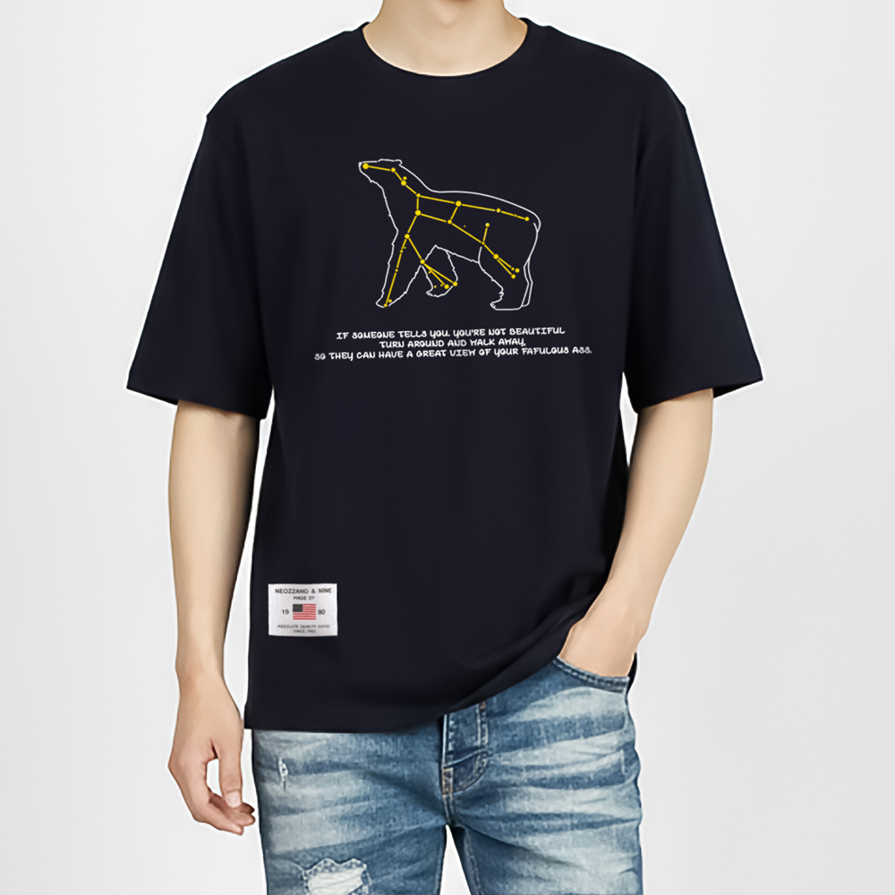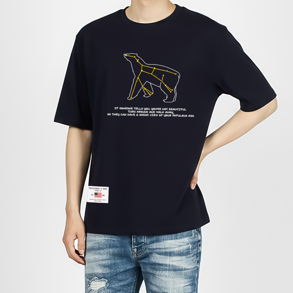 [1+1] 곰자리 5부 반팔 티셔츠 남여공용 20수 면 반소매 티셔츠