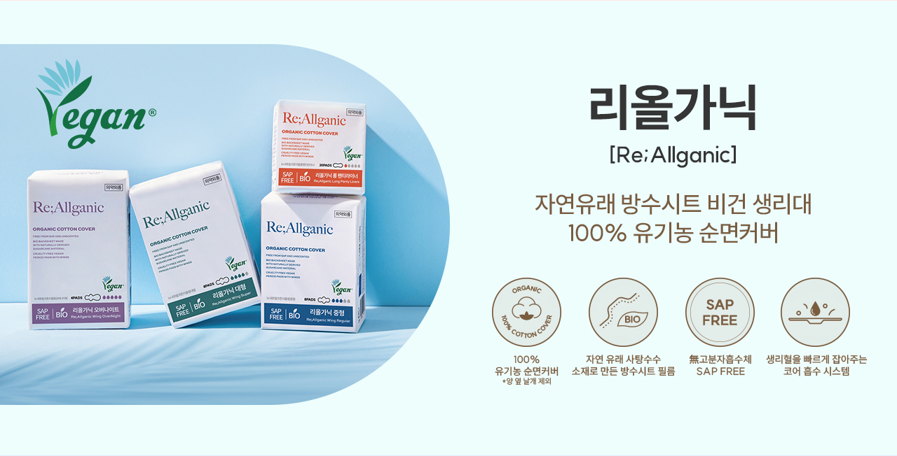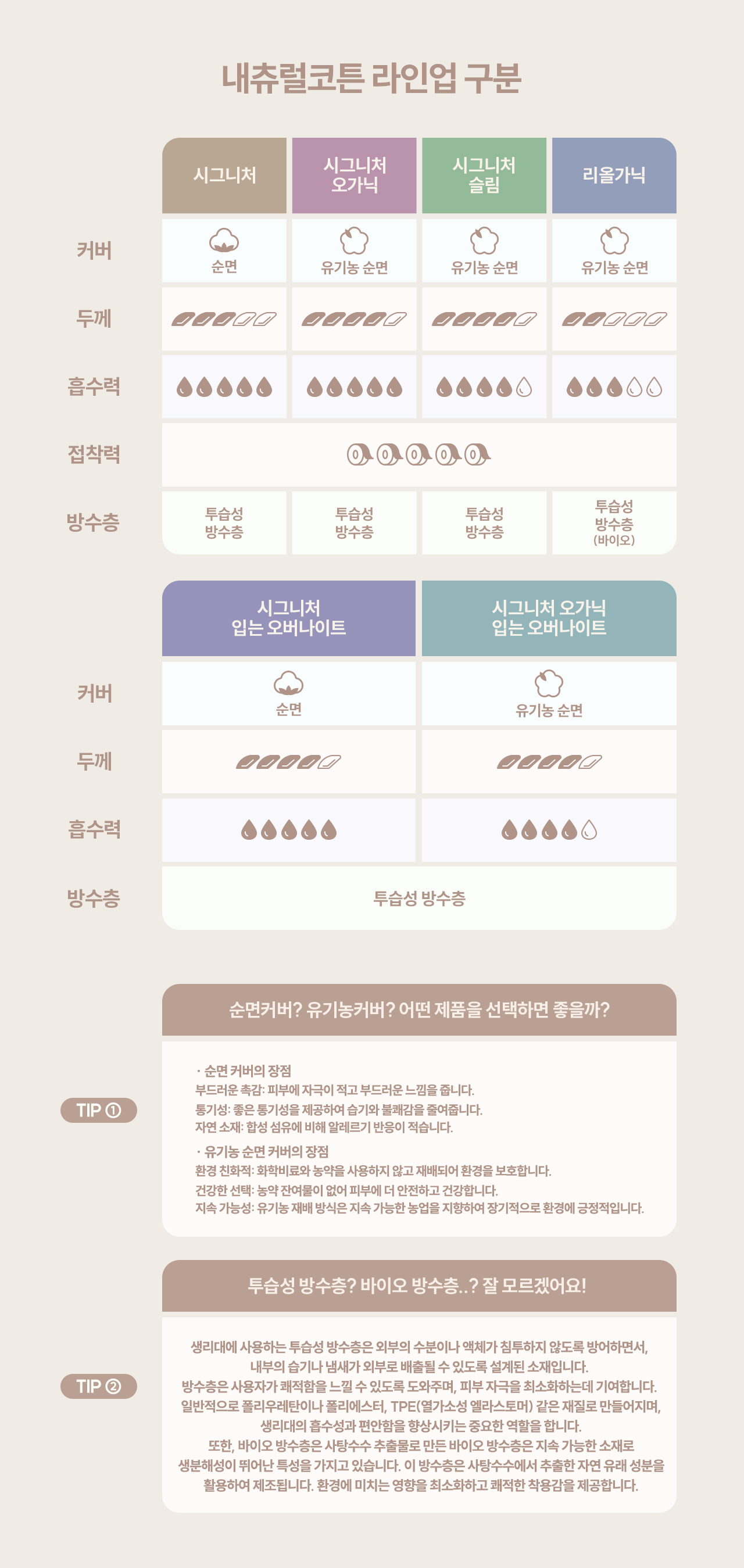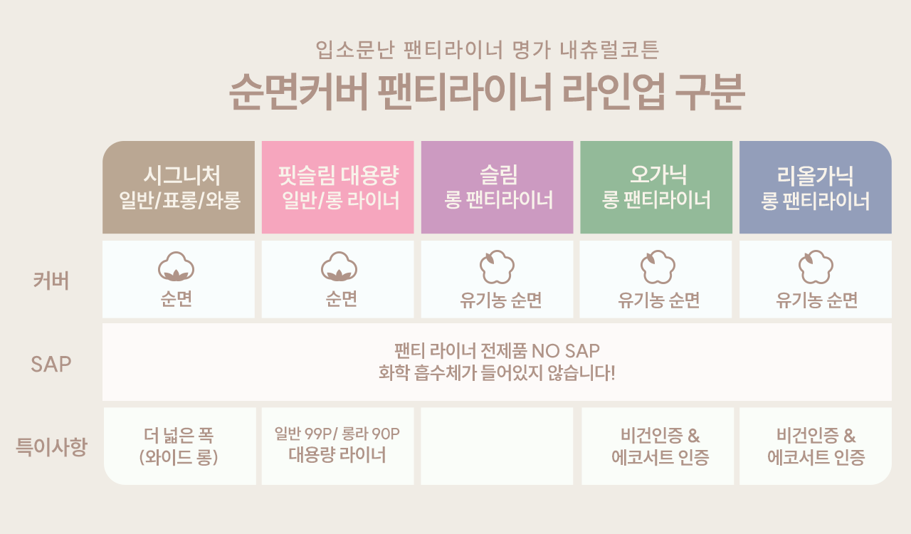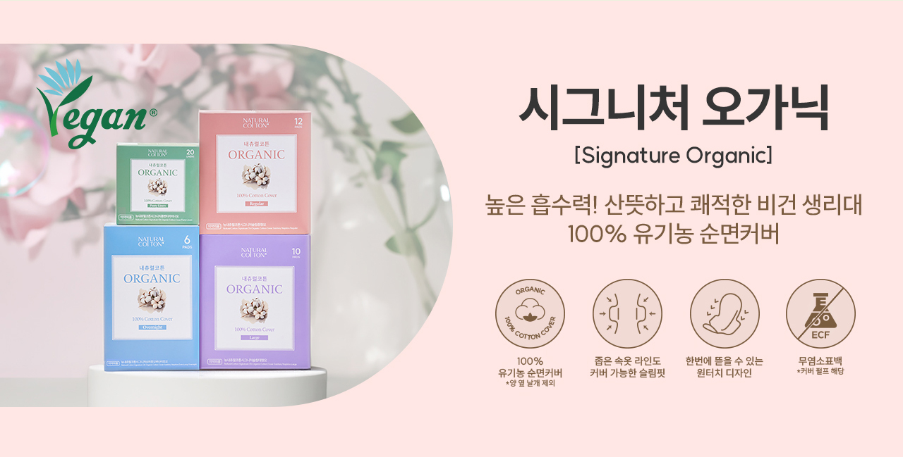 [내츄럴코튼] 시그니처 오가닉 유기농 생리대 중형/대형/오버나이트/롱 라이너 10팩 모음전