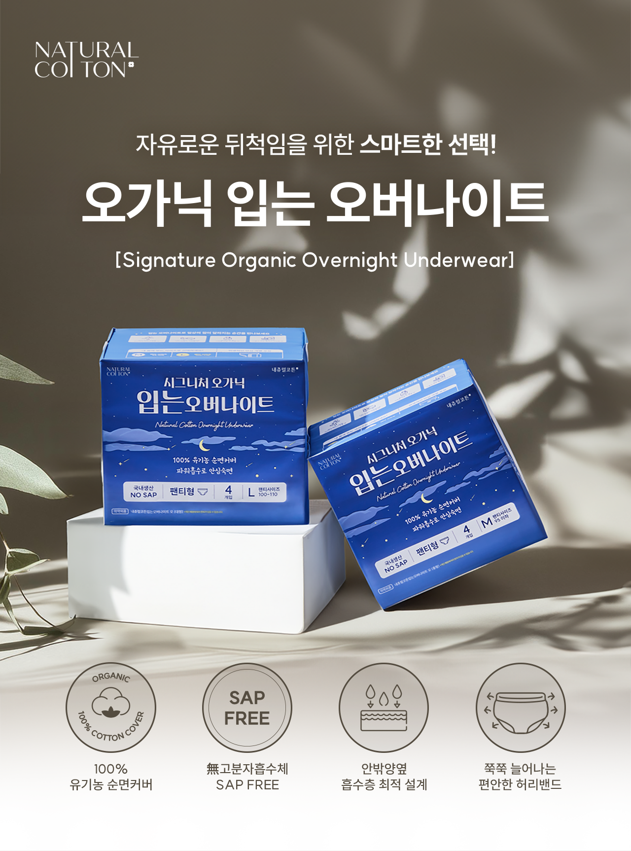 [내츄럴코튼] 시그니처 오가닉 입는 오버나이트 팬티형 4Px10팩 중형/대형