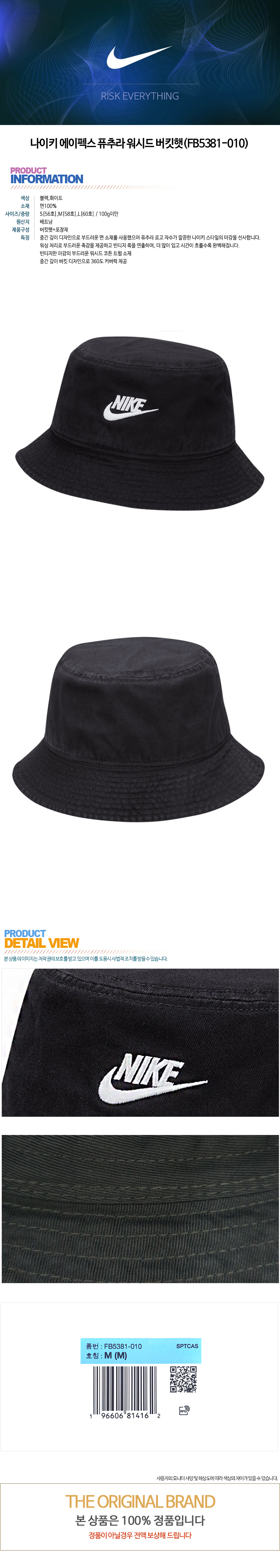 나이키 에이펙스 퓨추라 워시드 버킷햇(FB5381-010)
