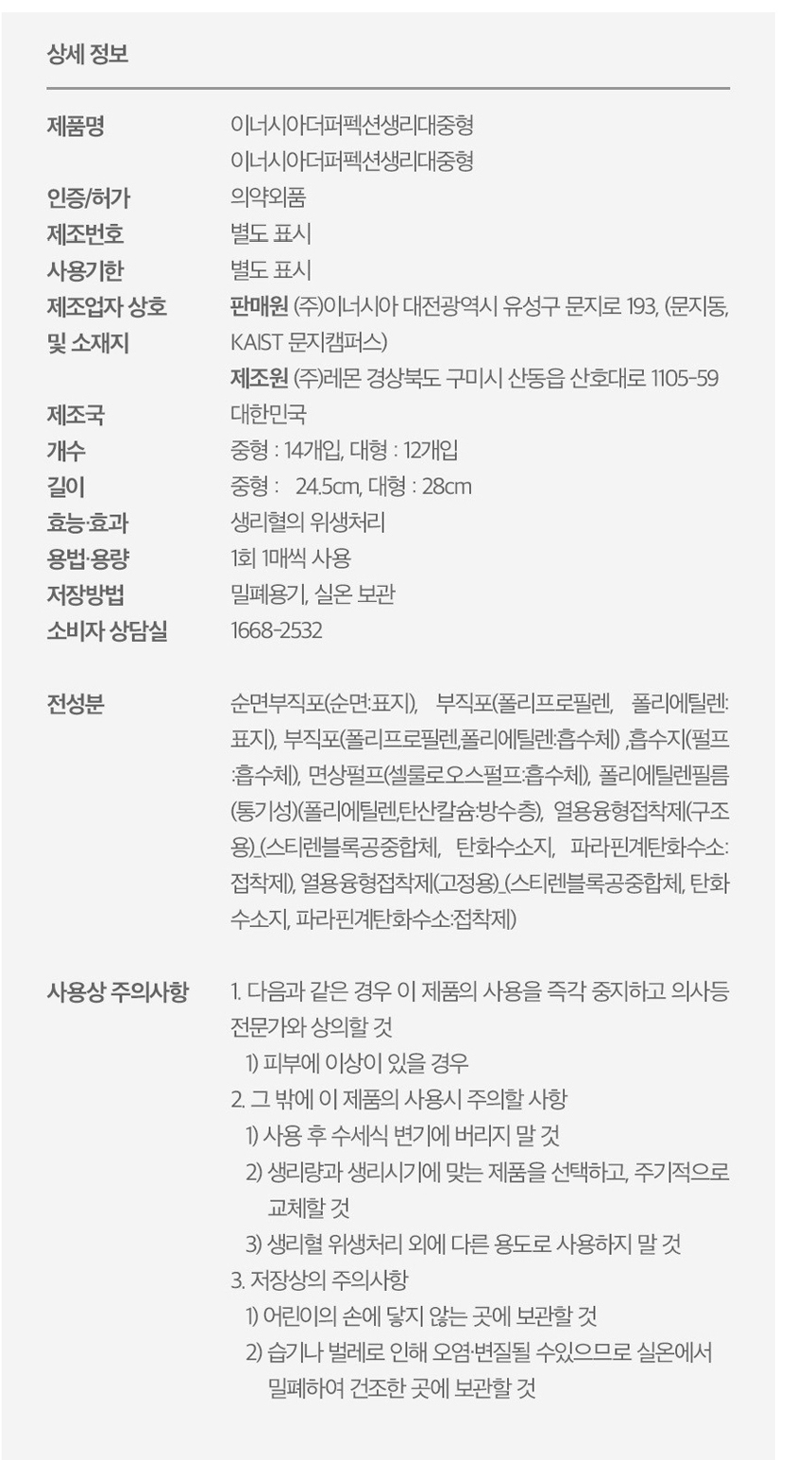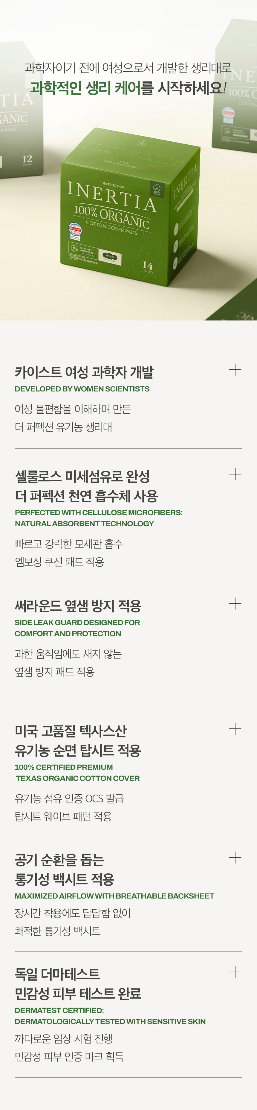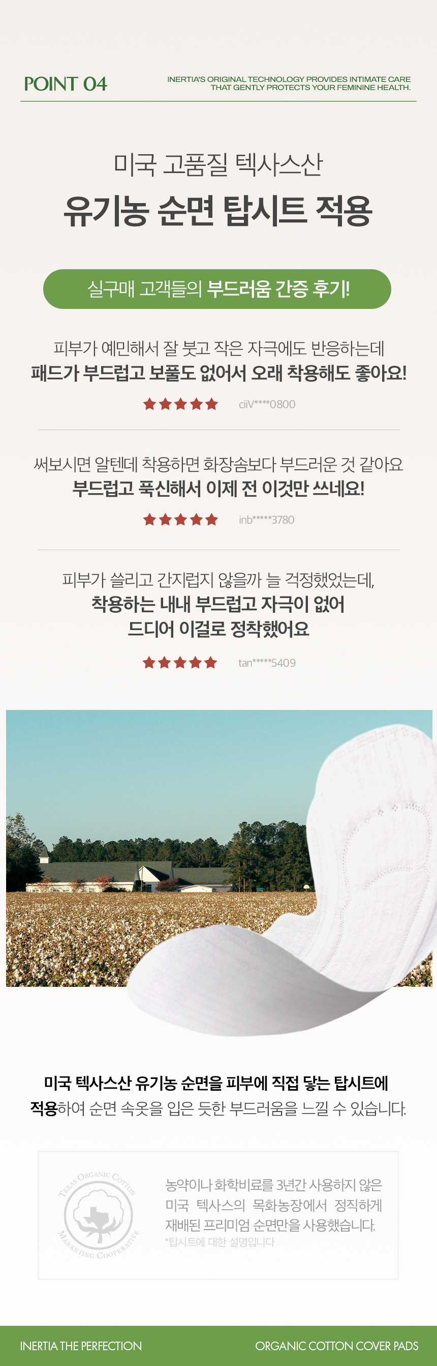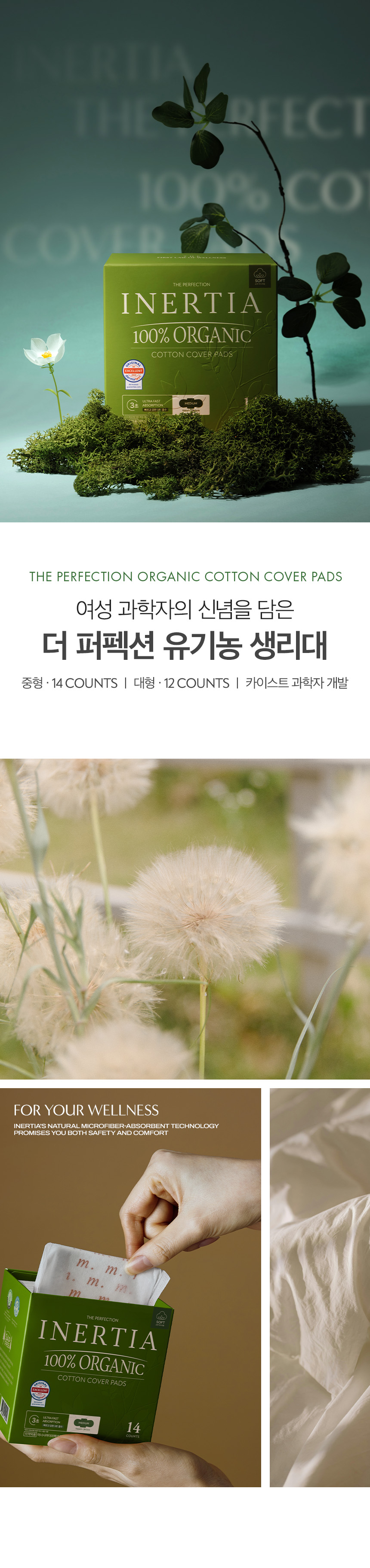 [이너시아] 더 퍼펙션 유기농 순면 생리대 중형(14P)6팩, 식물성 천연 흡수체