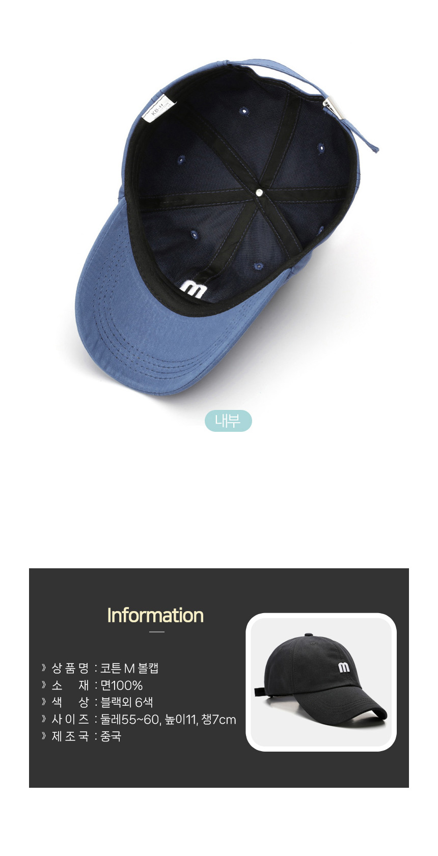 코튼 볼캡 M 컬러 로고 캡모자 남성모자 여성모자 야구모자 챙모자 무료배송
