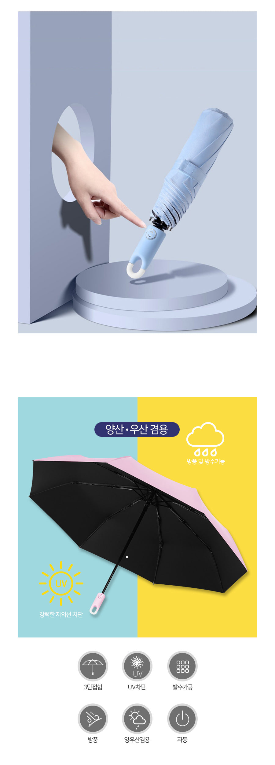 1+1(2PACK) 고리 3단자동우산 암막양산 우양산 무료배송
