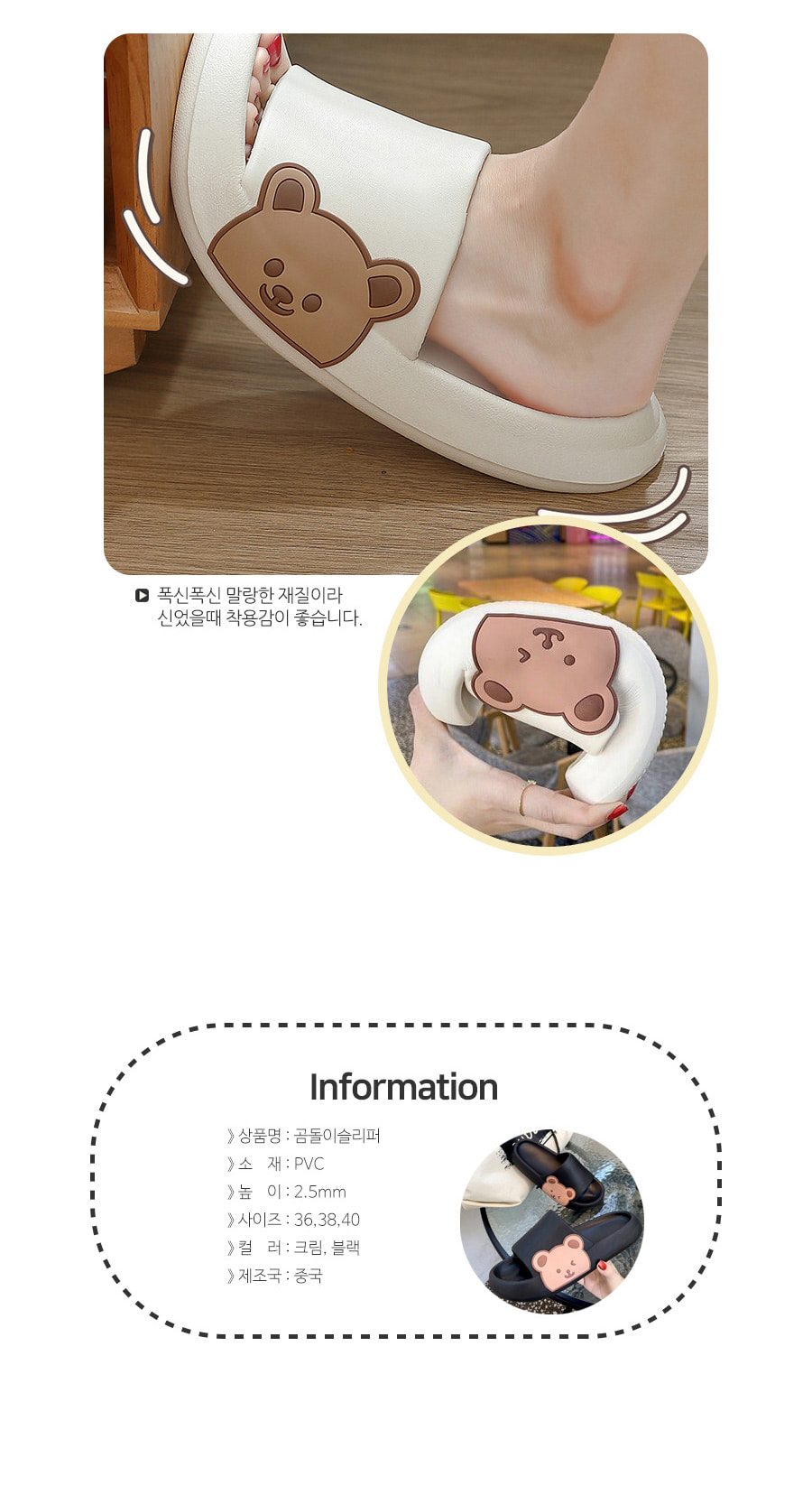 1+1 (2PACK) 베어 패치 여성 남성 쿠션 슬리퍼 실내화 거실화 샌들 슈즈 무료배송