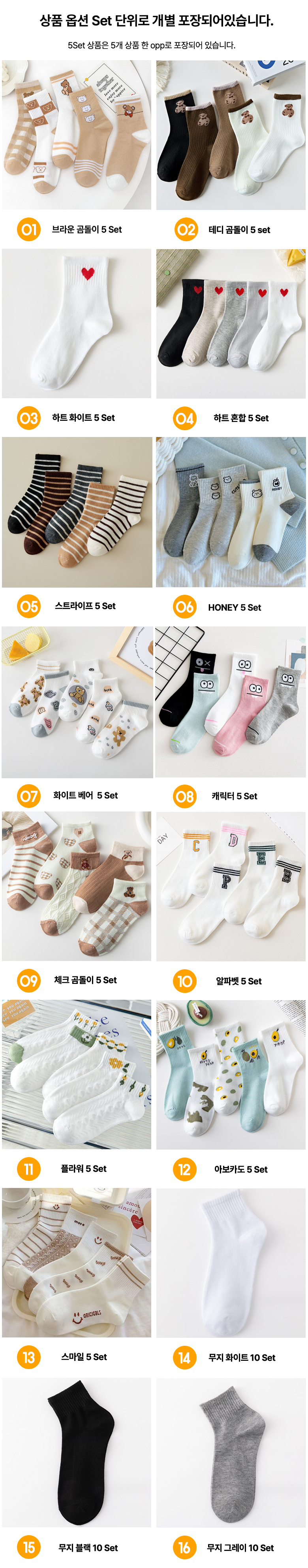 신상 양말 16종 10P 20P 세트 여성양말 중목 곰돌이 발목양말 귀여운 패션 양말 무료배송