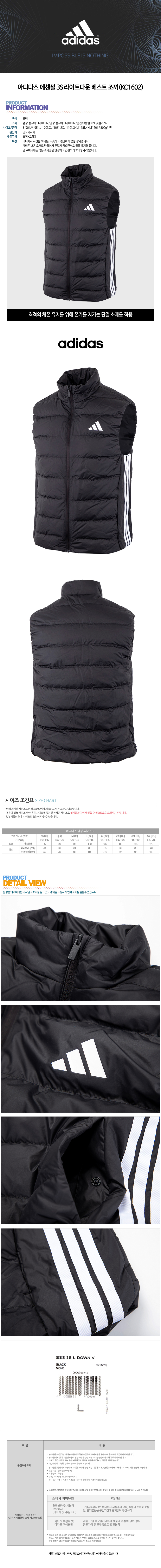 아디다스 에센셜 3S 라이트다운 베스트 조끼(KC1602)