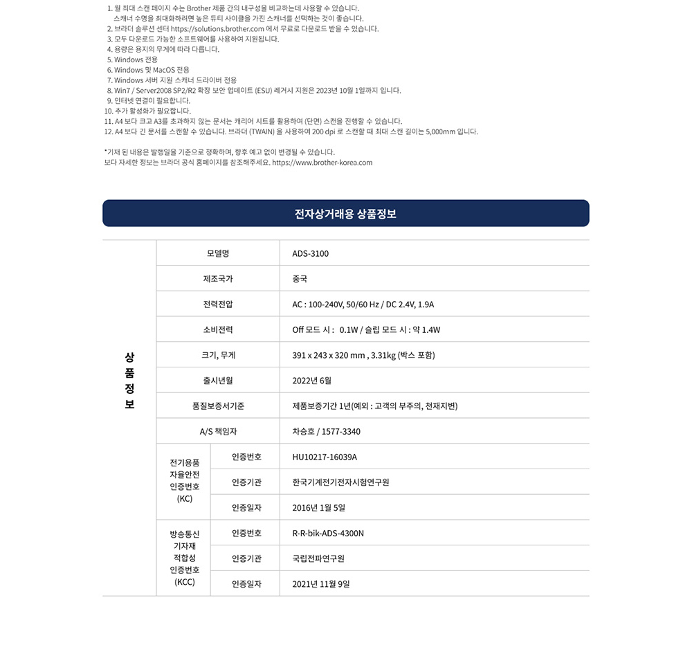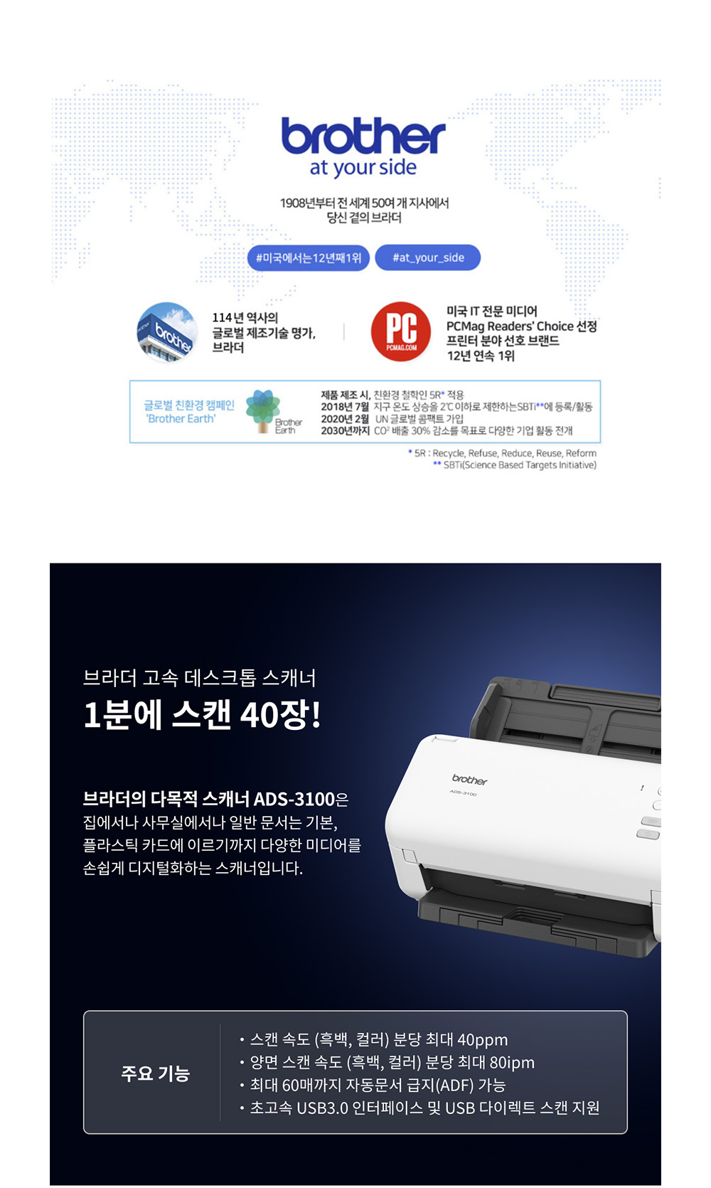 브라더 ADS-3100 (스캐너) 양면스캔, ADF 지원 데스크톱 고속 문서 스캐너