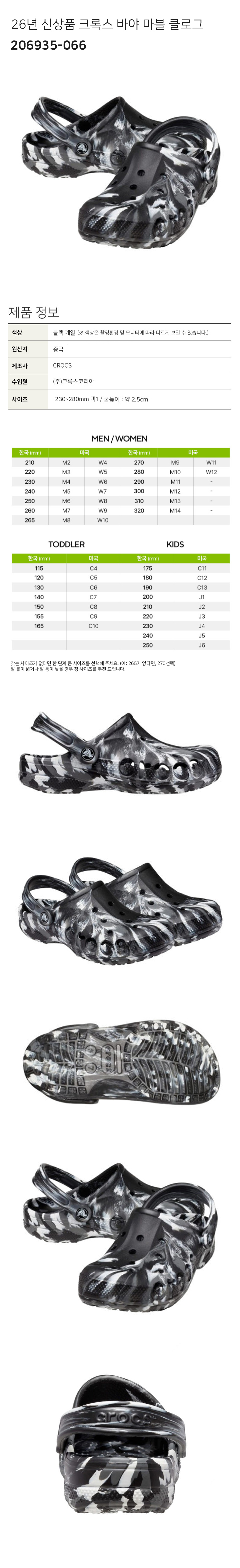 26년 신상품 크록스 바야 마블 클로그 블랙화이트 06935-066
