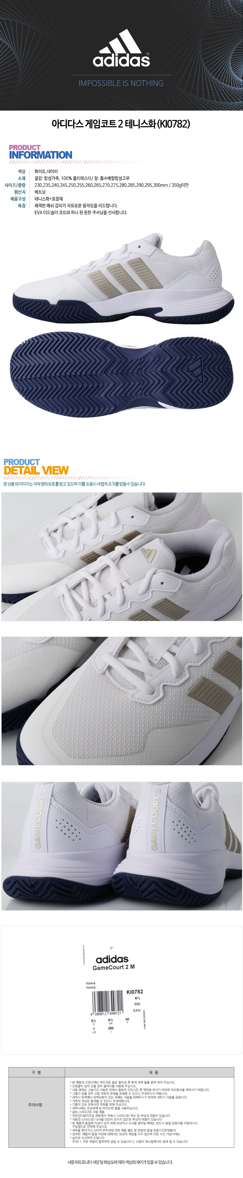 아디다스 게임코트 2 테니스화(KI0782)
