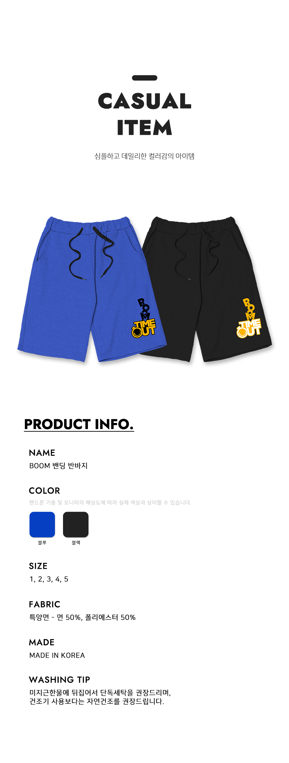 [1+1] BOOM 반바지 남여공용 버뮤다 밴딩 팬츠