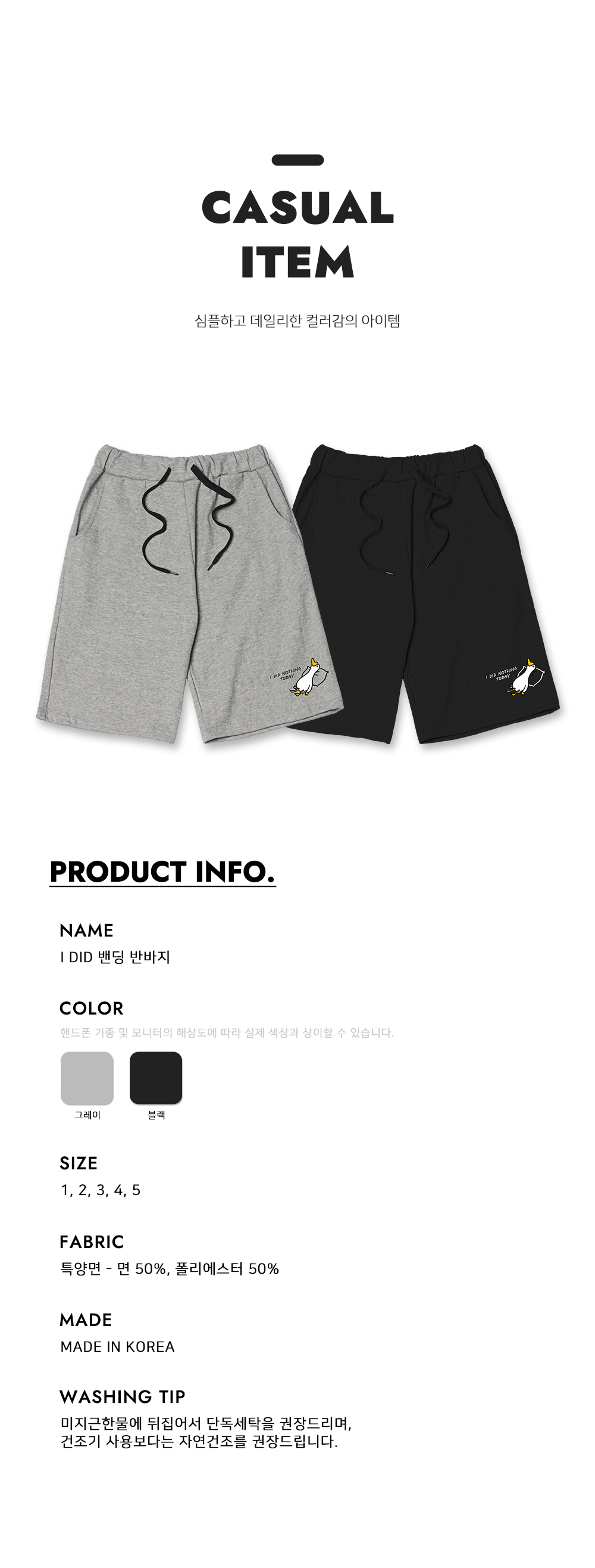 [1+1] I DID 반바지 남여공용 버뮤다 밴딩 팬츠