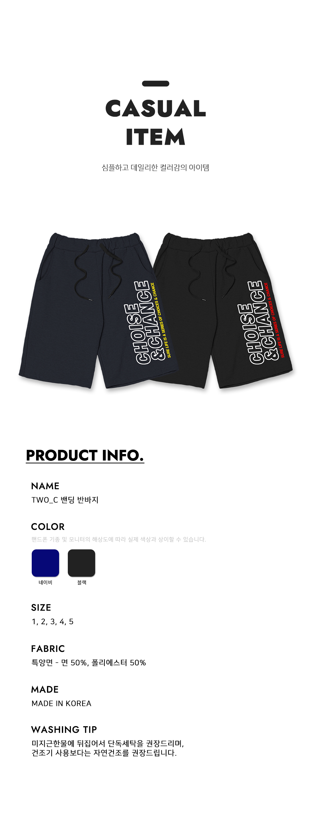 [1+1] TWO_C 반바지 남여공용 버뮤다 밴딩 팬츠
