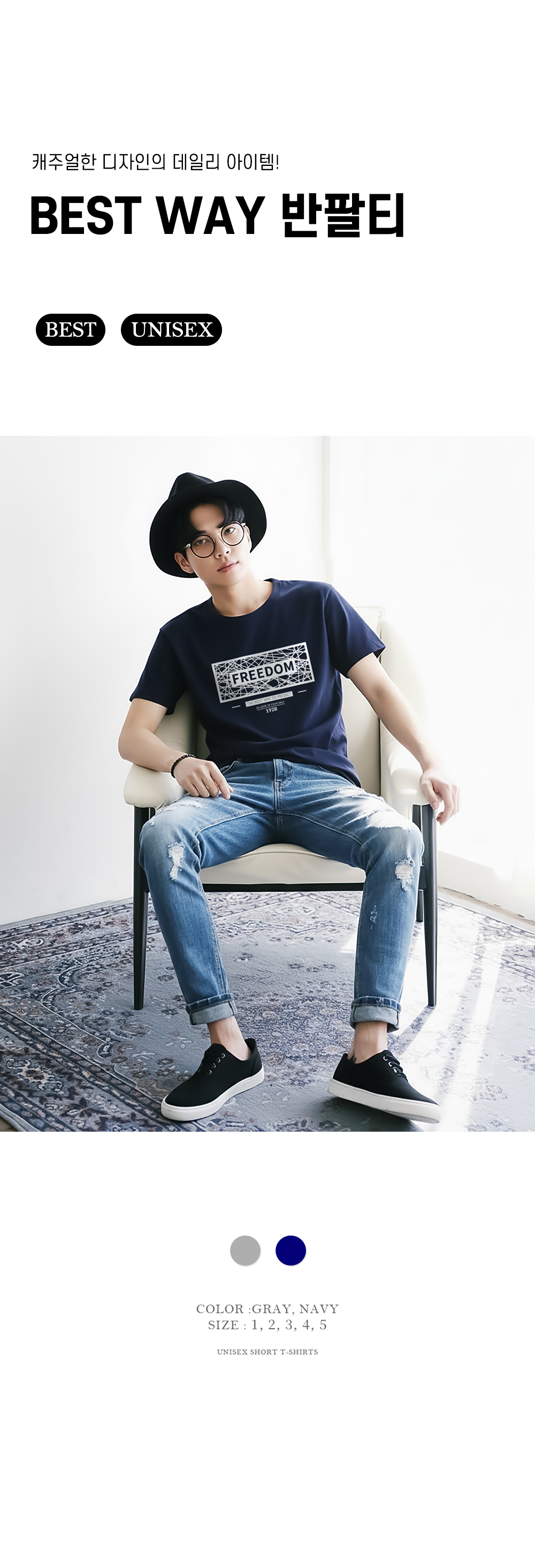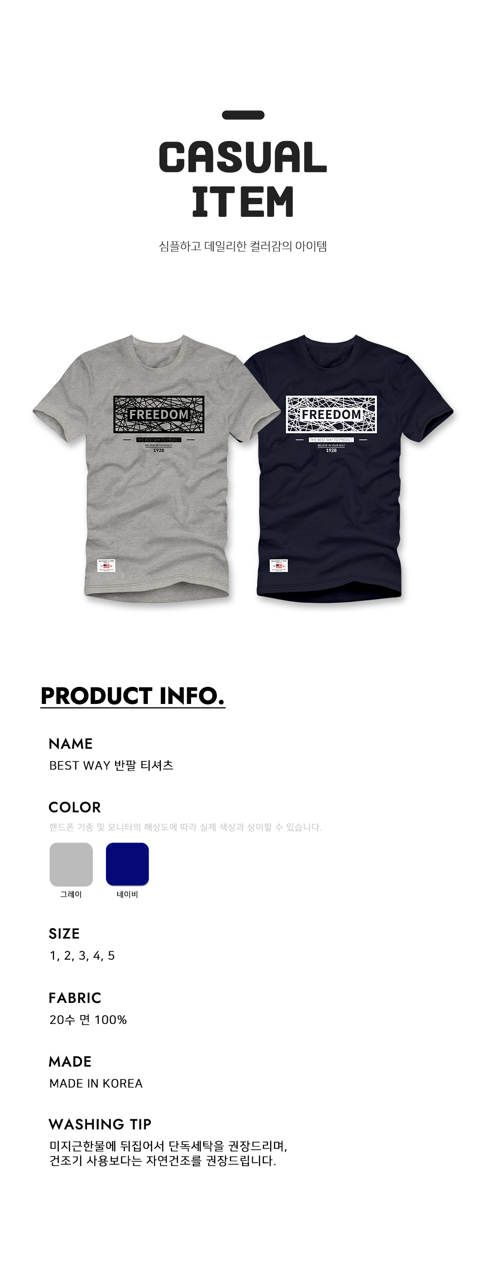[1+1] BEST WAY 반팔 티셔츠 남여공용 20수 면 반소매 티셔츠