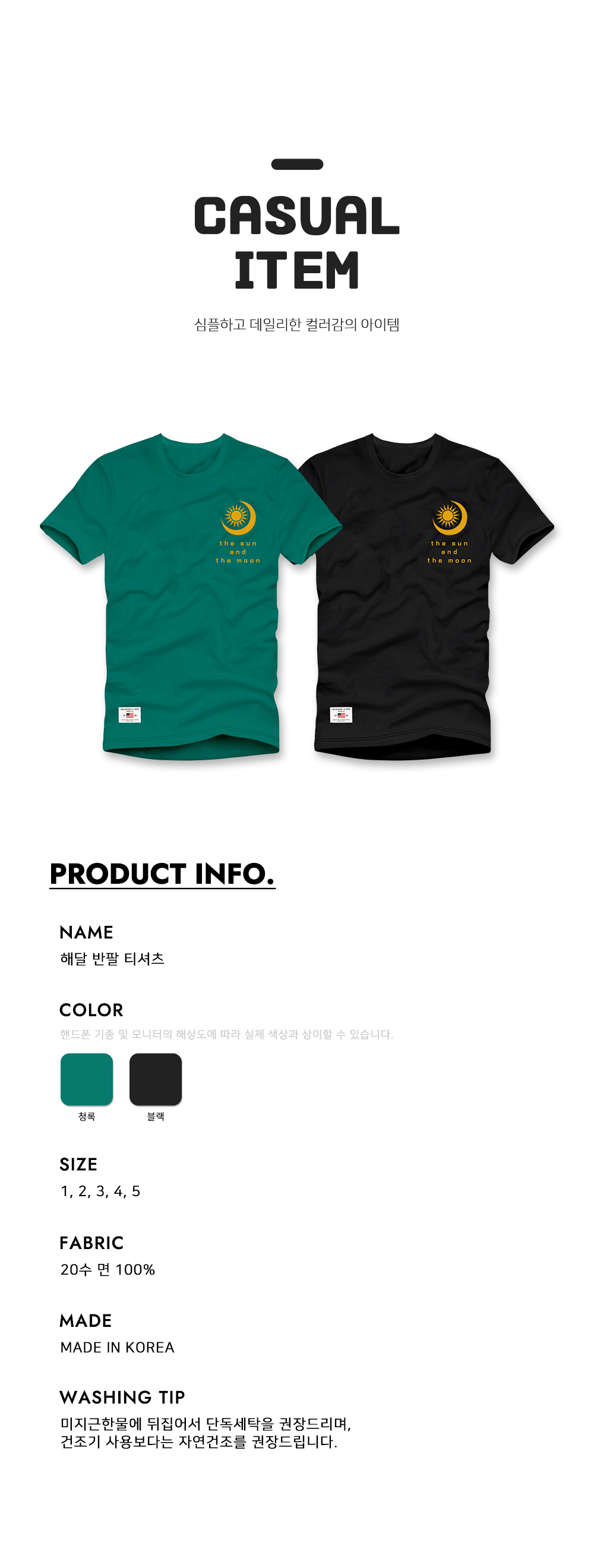 [1+1] 해달 반팔 티셔츠 남여공용 20수 면 반소매 티셔츠