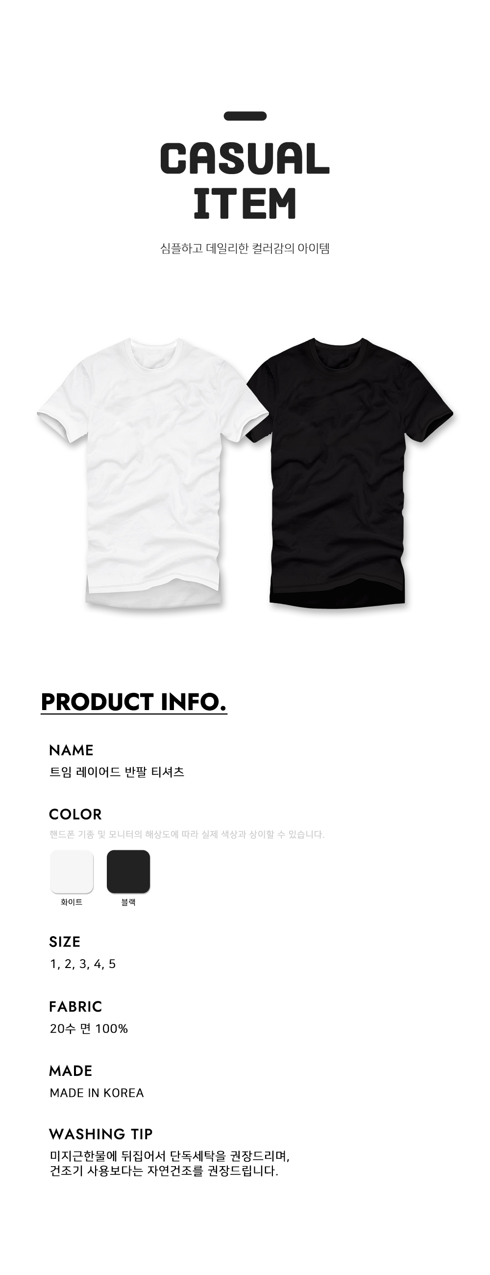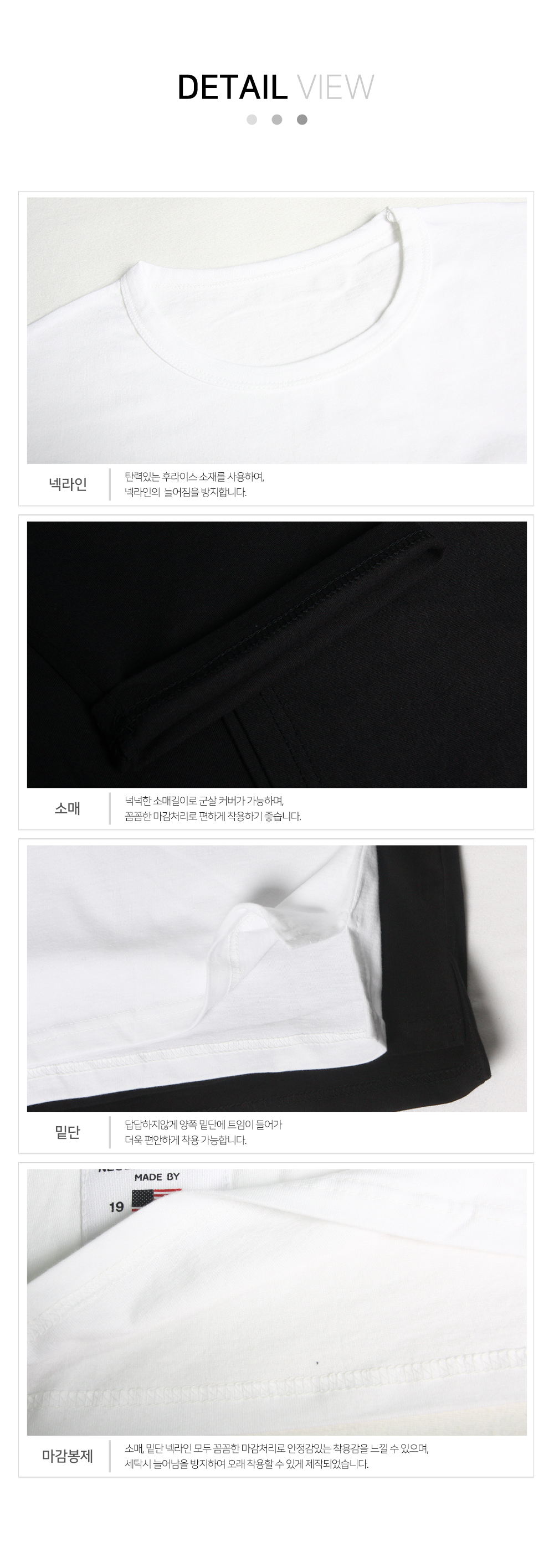 [1+1] 트임 레이어드 반팔 티셔츠 남여공용 20수 면 반소매 티셔츠