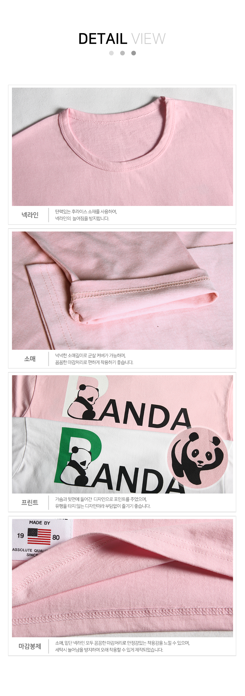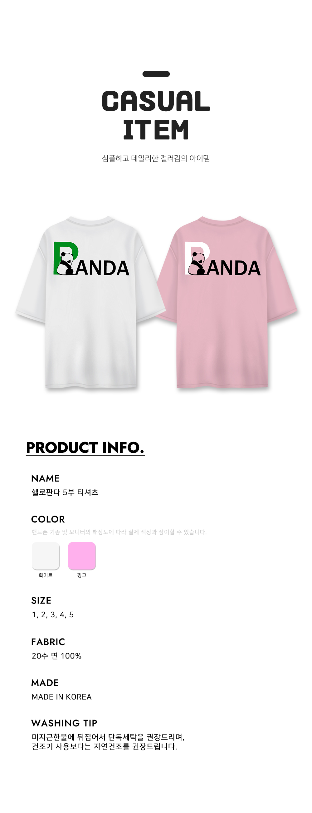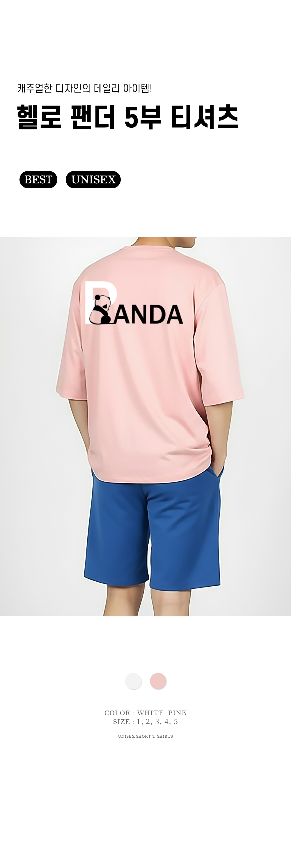 [1+1] 헬로팬더 5부 티셔츠 남여공용 20수 면 반소매 티셔츠