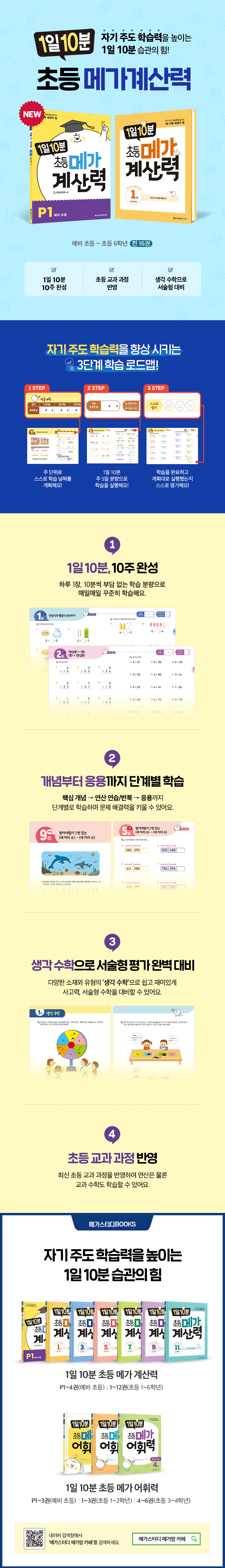[메가]1일 10분 초등 메가 계산력 : 초등 1학년 세트 1권, 2권 [ 전 2권 ]