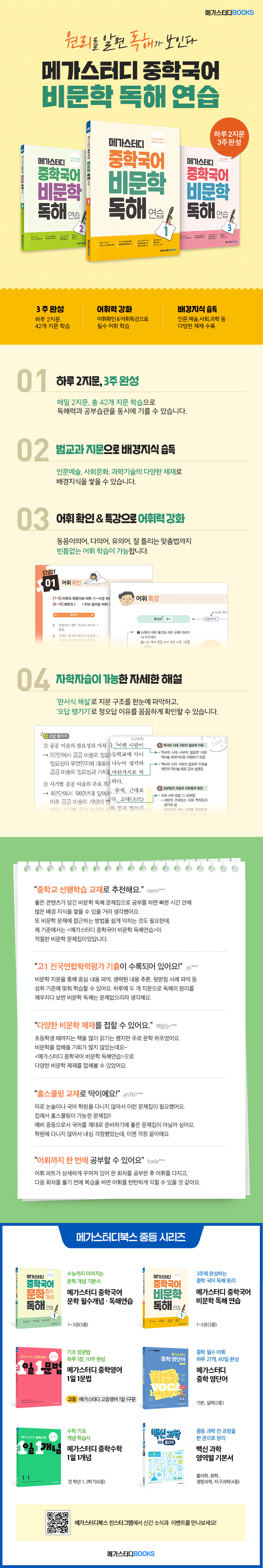 [메가]메가스터디 중학국어 비문학 + 문학 독해 3 세트 중2, 중3, 예비고1 [ 전2권 ]