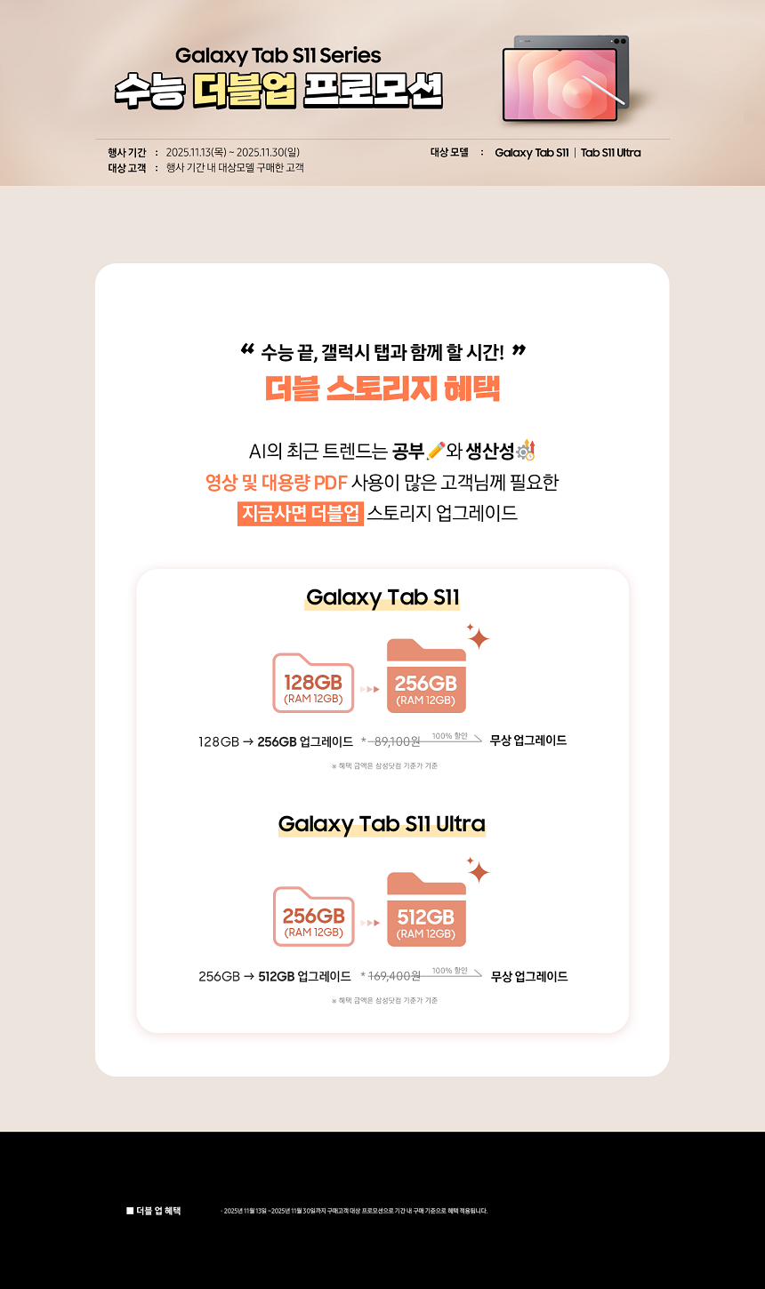 ★더블업혜택★ NEW 삼성 갤럭시탭 S11(WiFi) (128GB) -> (256GB) (색상선택) SM-X730N